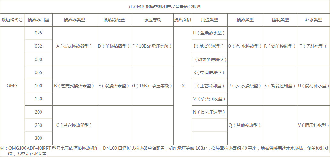 歐邁格換熱機(jī)組產(chǎn)品型號命名規(guī)則