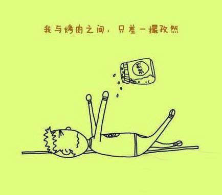 自己和烤肉之間,也只差一撮孜然了。